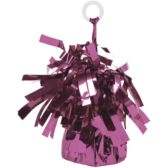 Met dit roze ballongewicht blijven je heliumballonnen netjes op hun plek én ziet je decoratie er direct feestelijker uit. Het gewicht is afgewerkt met glanzende metallic franjes, waardoor het ook zonder ballonnen al een leuke eyecatcher is op tafel of op de vloer.