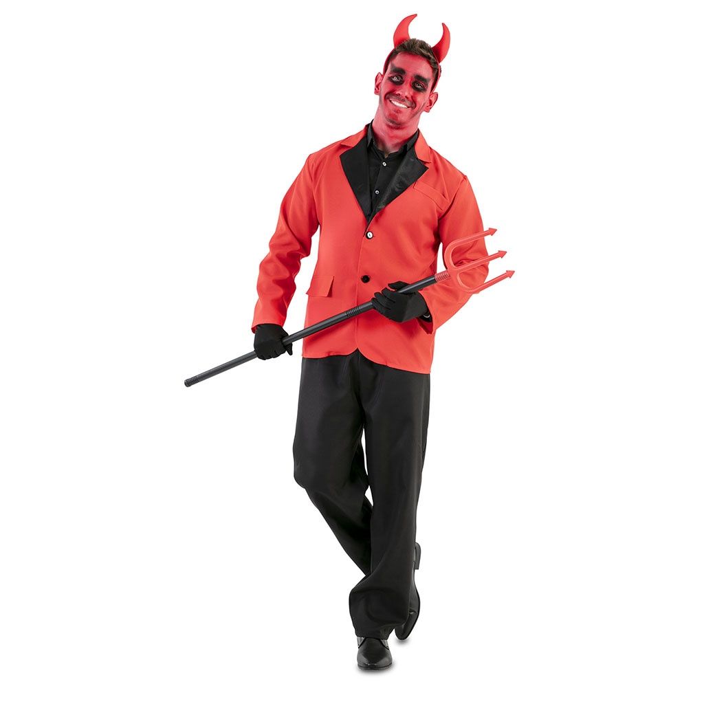 Ga voor vurige vibes met dit complete duivel kostuum. De set bestaat uit een rode chaqueta (jas), bijpassende pantalón (broek) en een diadema con cuernos (diadeem met hoorns). Alles wat je nodig hebt voor Halloween, carnaval of een hels goed themafeest.