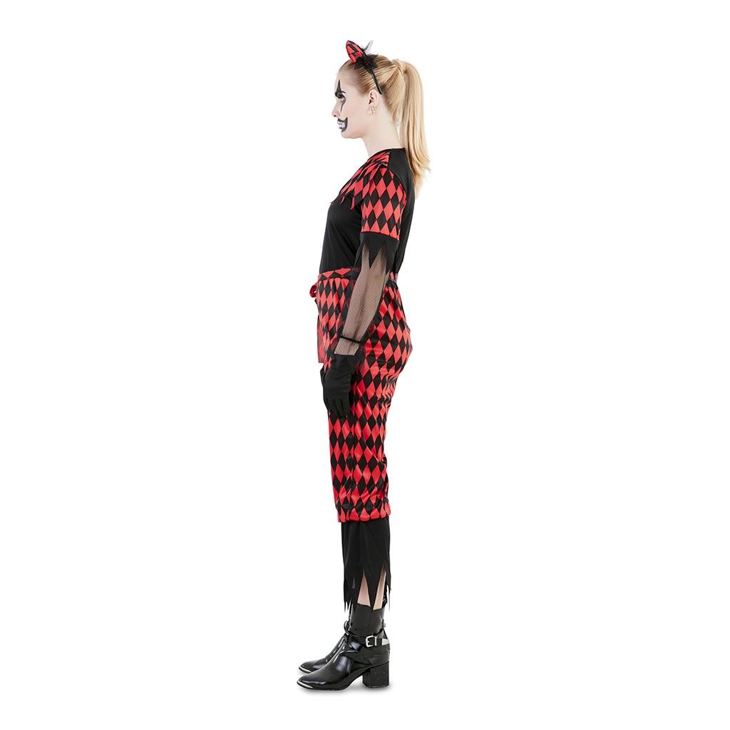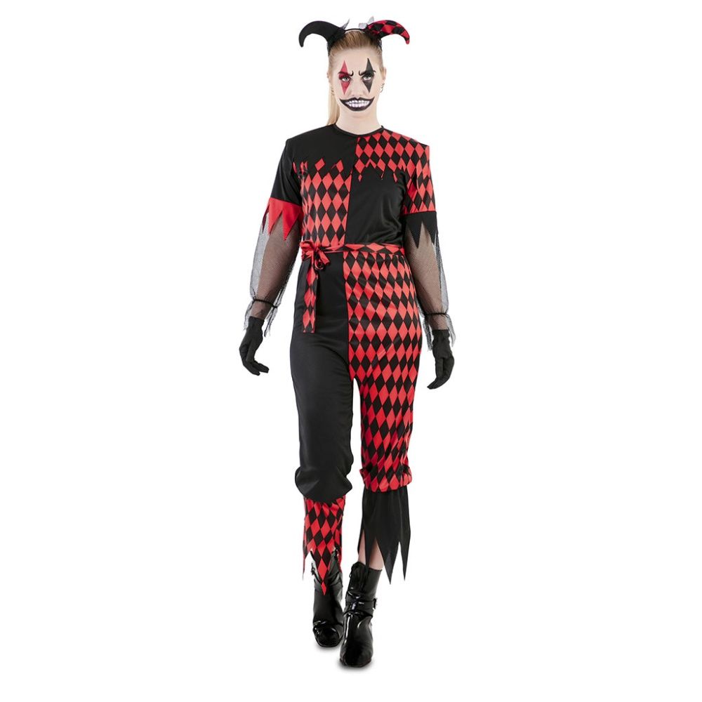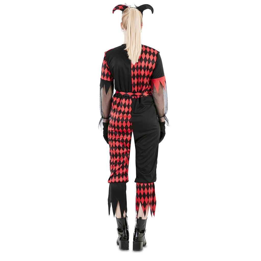 Ga voor een spannende en verleidelijke look met dit duivelse nar kostuum voor dames. De outfit bestaat uit een opvallende jumpsuit, een riem die je taille accentueert en een haarband met duivelse details. Ideaal voor Halloween, carnaval of een horror themafeest.