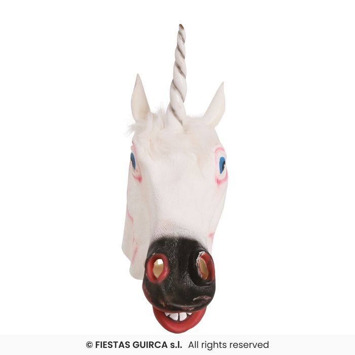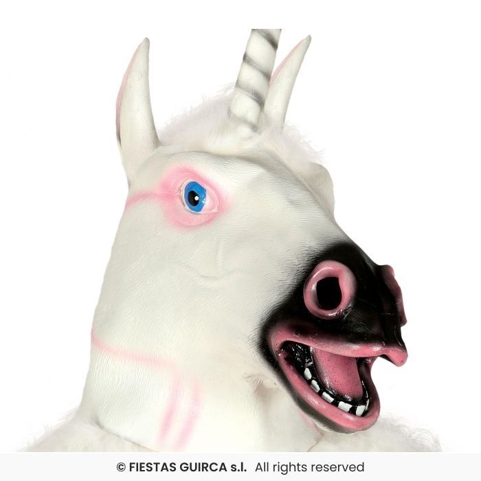Met dit eenhoorn masker steel je gegarandeerd de show. Het masker heeft een overdreven, komische uitstraling met grote ogen, een open bek en een opvallende hoorn. Perfect voor wie niet onopgemerkt wil blijven op een feestje of evenement.