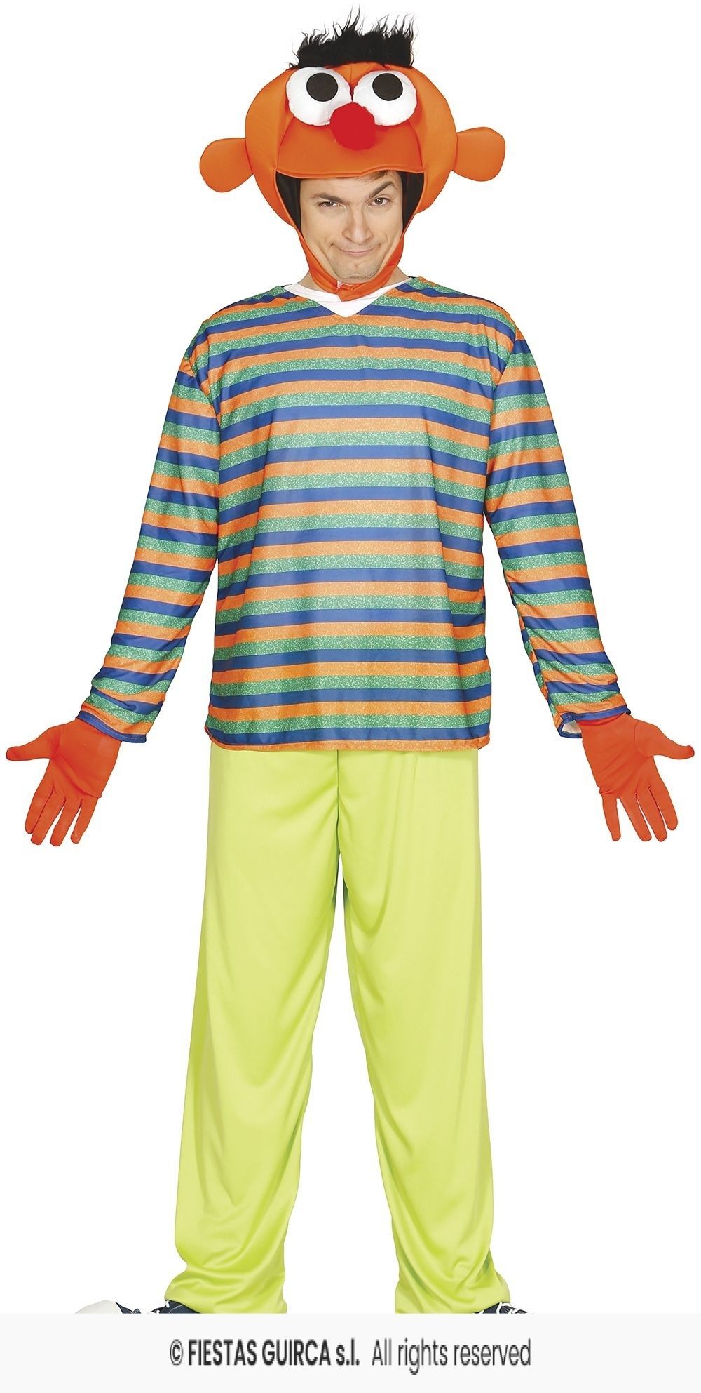 - Ernie kostuum - Bert en Ernie bestaat uit een shirt, broek en de hoofdkap.
