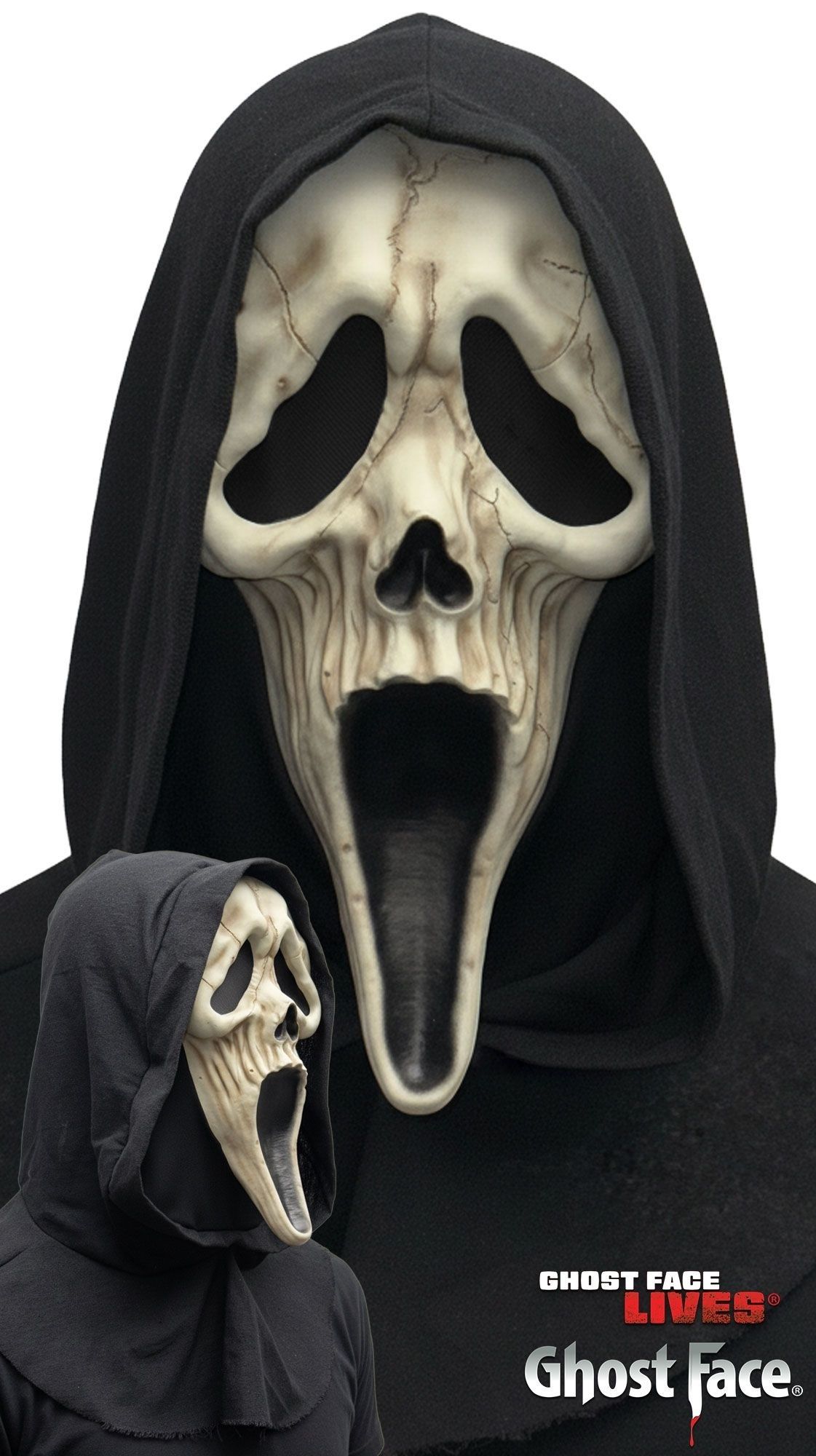 Het masker heeft een verweerde, skeletachtige uitstraling die zorgt voor een nog griezeliger effect dan het klassieke Ghost Face® masker. Dankzij de bijpassende kap sluit het masker mooi aan en ben je direct herkenbaar als de iconische horrorfiguur uit de Scream-films. Het masker is comfortabel te dragen en ideaal te combineren met een Ghost Face® kostuum.