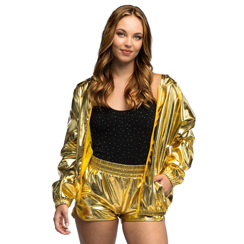 Met dit gouden jasje met rits geef je jouw outfit direct een opvallende en stijlvolle uitstraling. De glanzende gouden kleur zorgt ervoor dat je gegarandeerd opvalt op ieder feest. Perfect voor carnaval, themafeesten, festivals of een foute party.