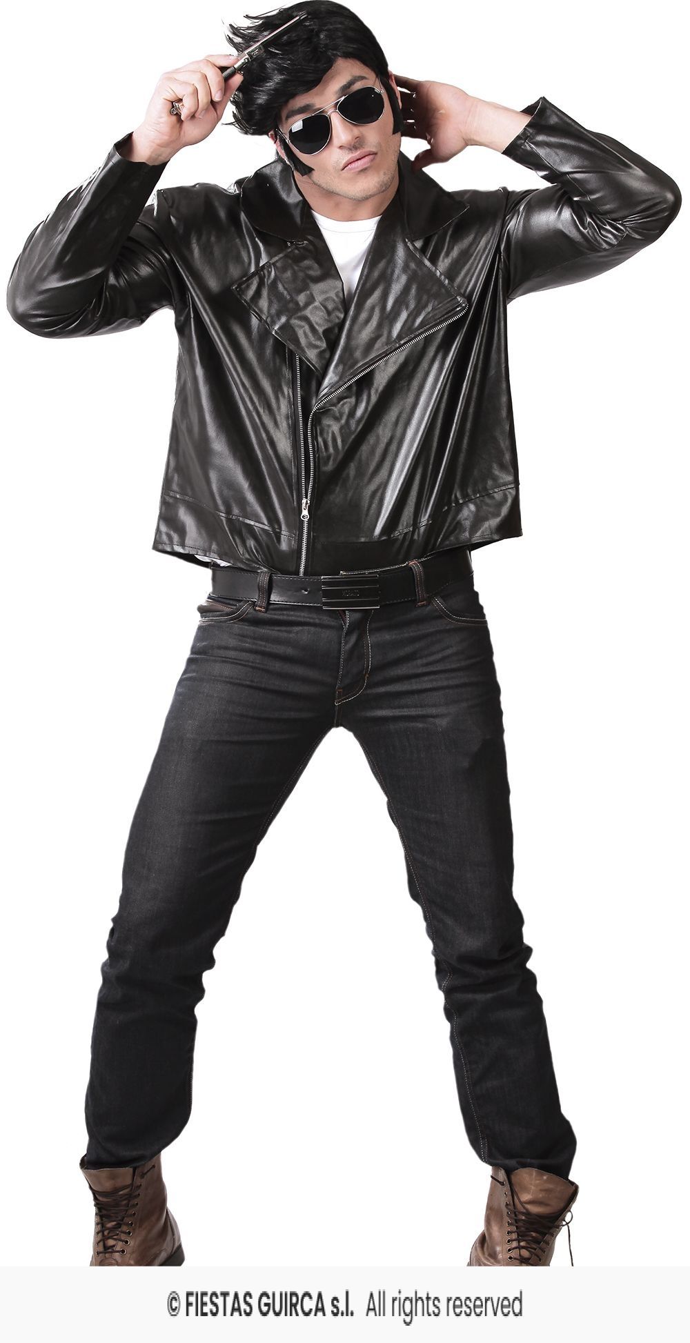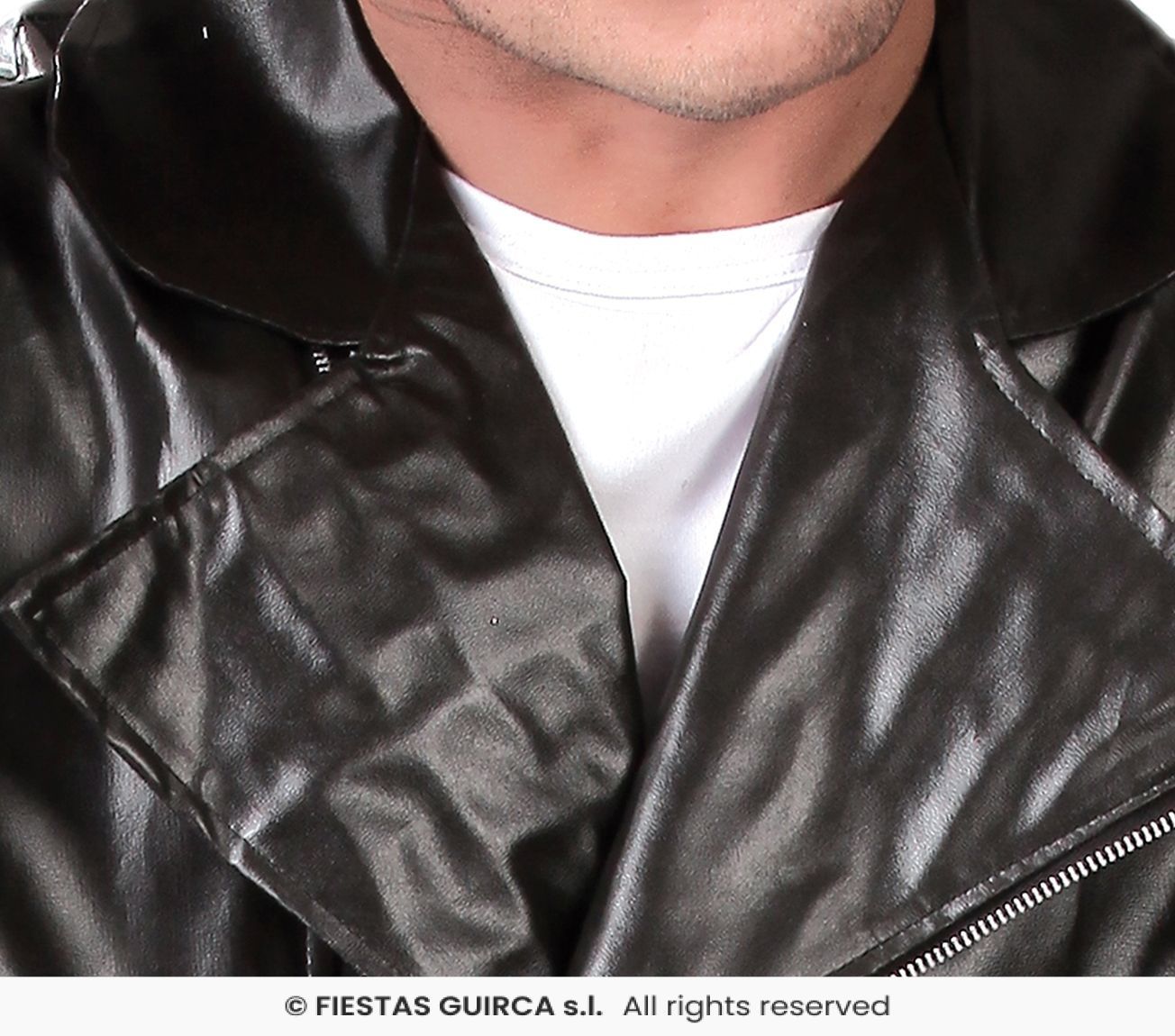 Het Grease biker jasje is perfect als je verkleed gaat als Danny uit de film 'Grease' en maak je je outfit compleet met dit leder look jasje! Of als je verkleed gaat als Arnold Schwarzenegger uit de film 'The terminator', of als Kiss is dit Grease biker jasje fantastisch!