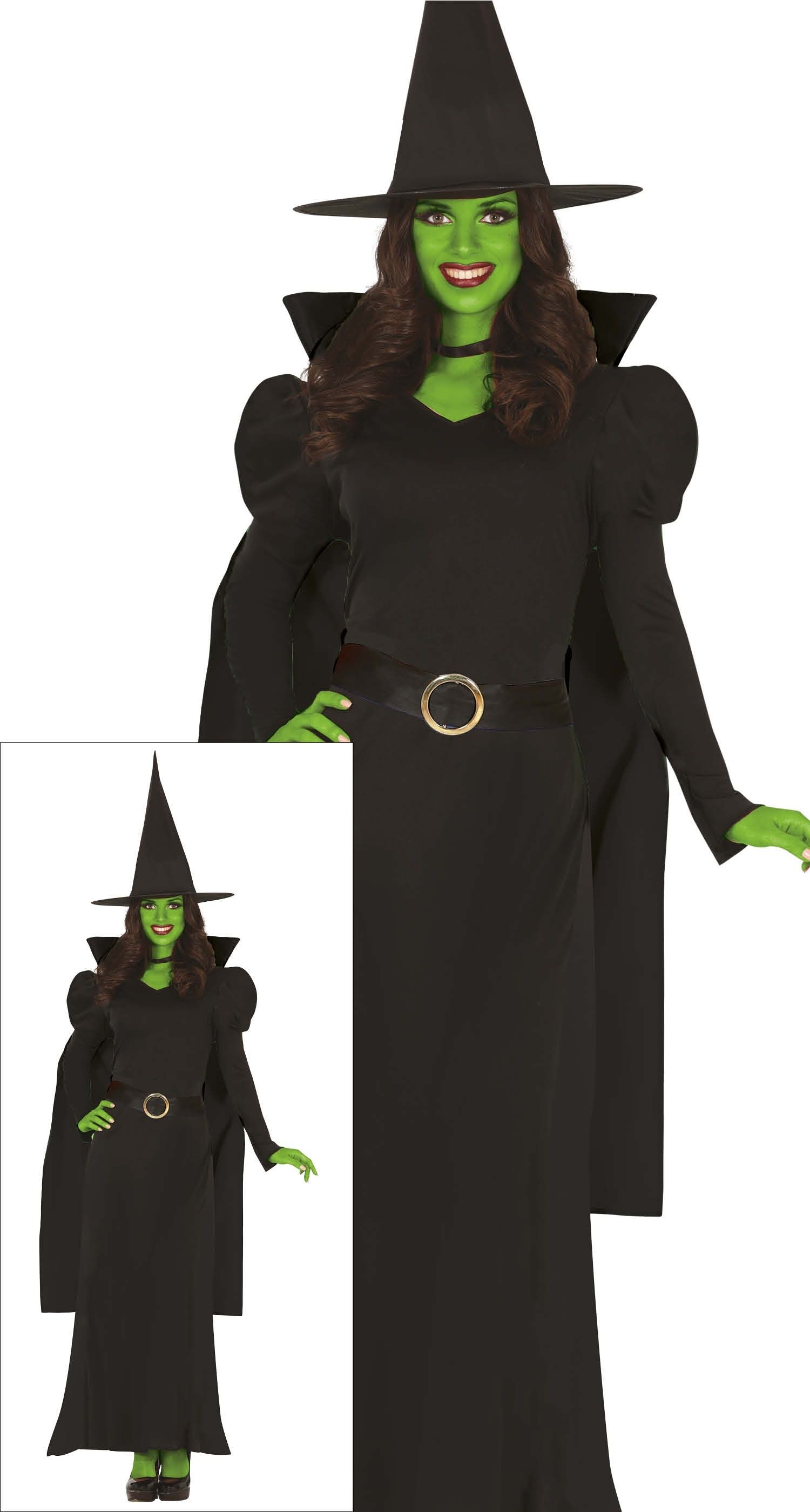 Vlieg stijlvol op je bezemsteel met dit Wicked Heks kostuum geïnspireerd op Elphaba! Met haar iconische groene huid, lange zwarte jurk en puntige hoed is dit dé outfit voor iedereen die als een échte heks Halloween wil vieren.