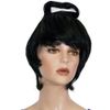 Deze Jaren 50 pruik zwart met strik heeft een elastieken band en is daardoor geschikt voor iedere maat!