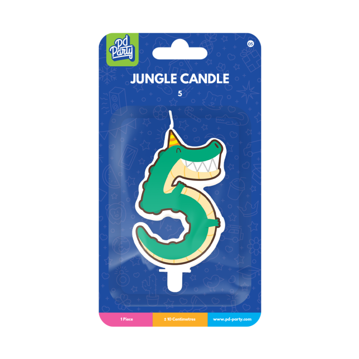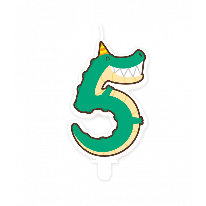 Jungle Verjaardagskaars - Cijfer 5 Krokodil