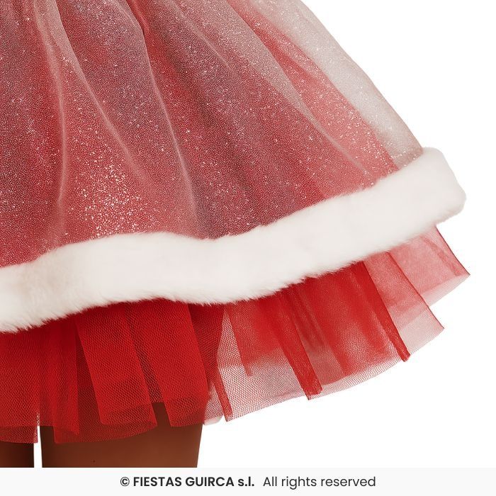 De rok bestaat uit meerdere luchtige lagen die zorgen voor een mooi volume en een elegante uitstraling. De elastische zwarte tailleband zorgt voor een fijne pasvorm en maakt de tutu makkelijk te combineren met diverse tops, kersttruien en accessoires. De witte bontlook aan de onderkant geeft het geheel een klassieke kersttouch.