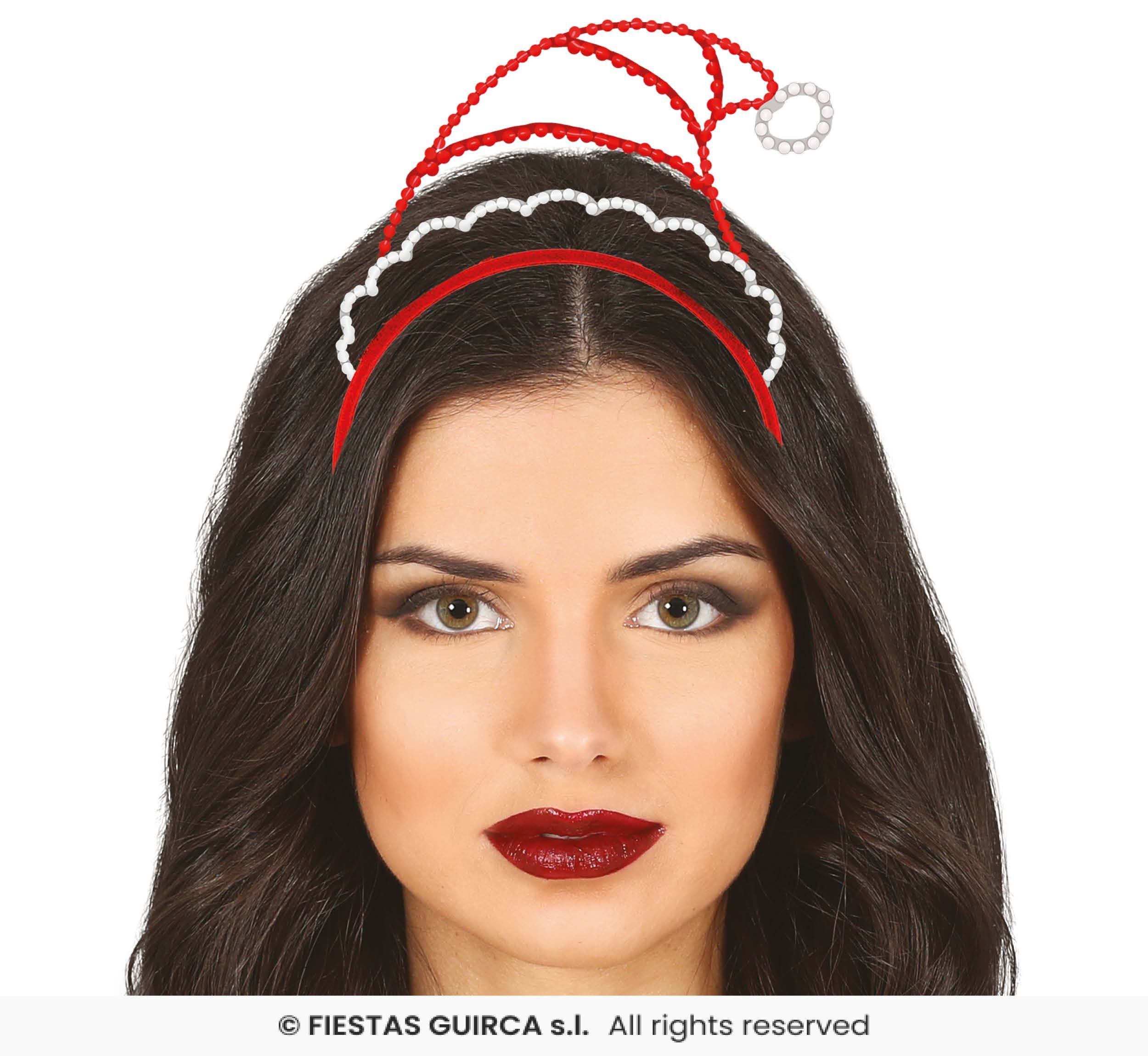 Het metalen design is stevig maar flexibel, waardoor de diadeem comfortabel blijft zitten, zelfs tijdens een lange avond vol muziek, gezelligheid en glühwein. De combinatie van rood en wit geeft een klassieke kerstuitstraling, terwijl het opengewerkte ontwerp een moderne twist toevoegt.