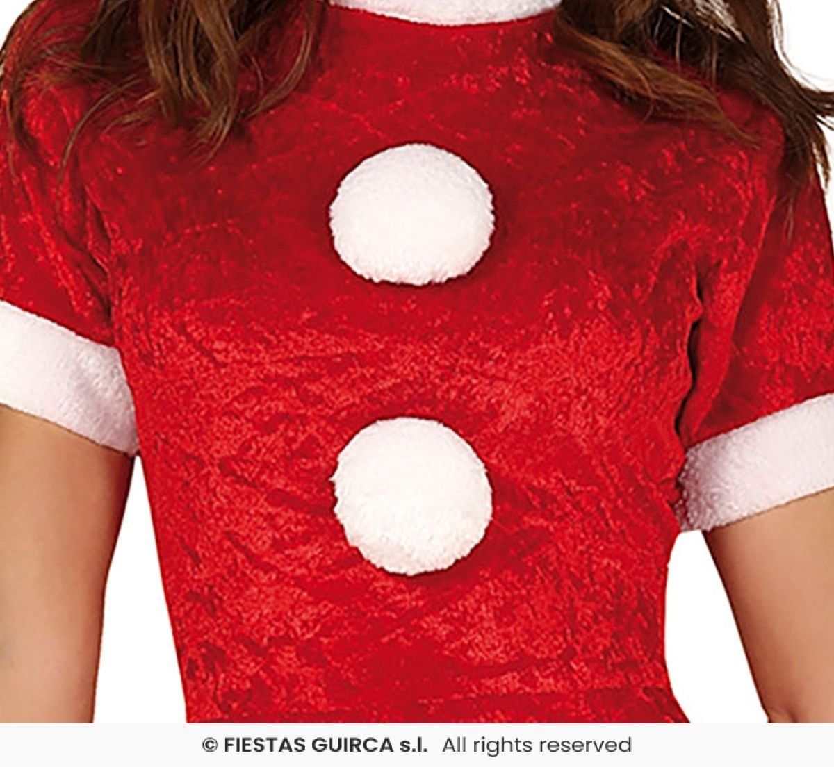 - Korte mouwen, wit pluche detail en 2 grote pompons op de voorkant