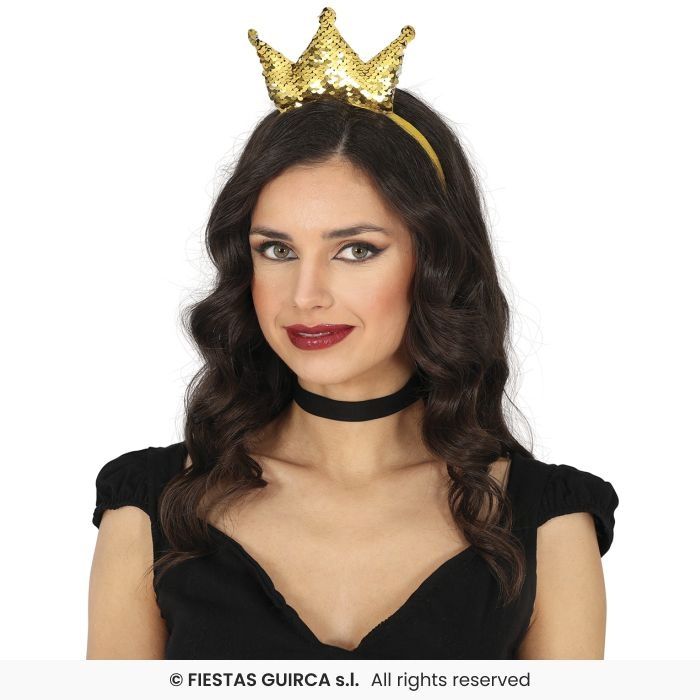 Voel je een echte koningin met deze sprankelende kroon haarband! De glinsterende gouden pailletten maken van elke outfit een feest en trekken gegarandeerd de aandacht. Perfect voor themafeestjes, Koningsdag, carnaval of als finishing touch bij een prinsessen- of royal outfit.