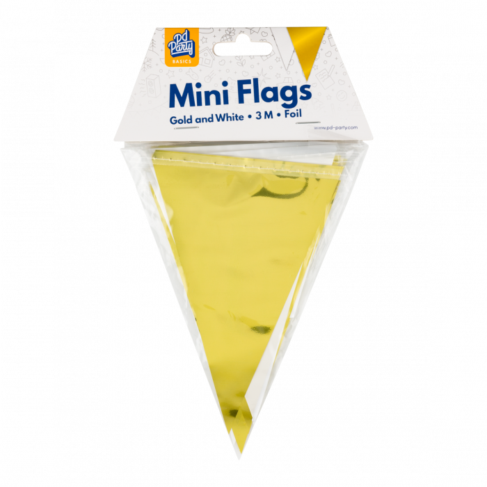 Op zoek naar een vrolijke en opvallende decoratie? Deze goude en witte mini vlaggenlijn van 3 meter is perfect voor elk feestje, van kinderverjaardagen tot festivals of Koningsdag. Door het kleine formaat is deze vlaggenlijn ideaal voor binnenshuis, tafeldecoratie of etalages!