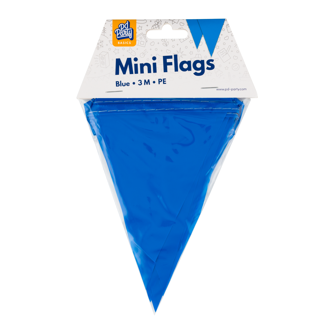 Met Mini Vlaggenlijn lichtblauw 3mtr hangt de feeststemming meteen in de lucht. Snel op te hangen en perfect voor verjaardagen, themafeesten of kantoorborrels.