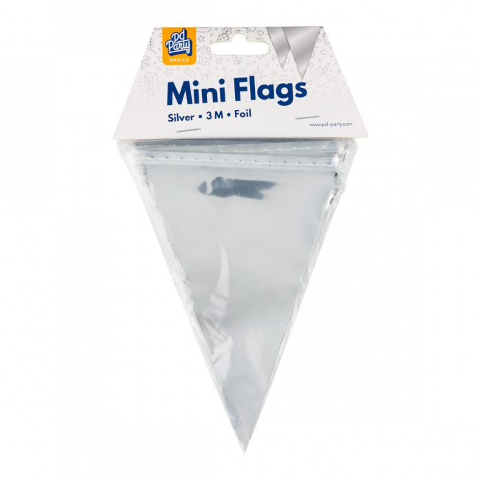 Kostuum bestaat uit: Kleine vlaggetjes slingers in de kleur zilver.