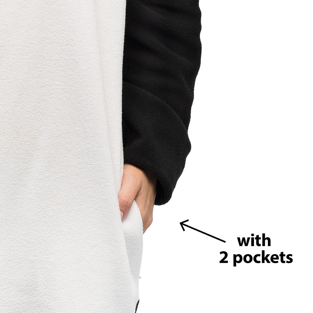 Met dit panda kostuum onesie verander je in een schattige en vrolijke panda. Het zwart-witte design en de capuchon met panda gezicht en oortjes maken dit dierenkostuum perfect voor carnaval, themafeesten, festivals of een gezellig verkleedfeest.