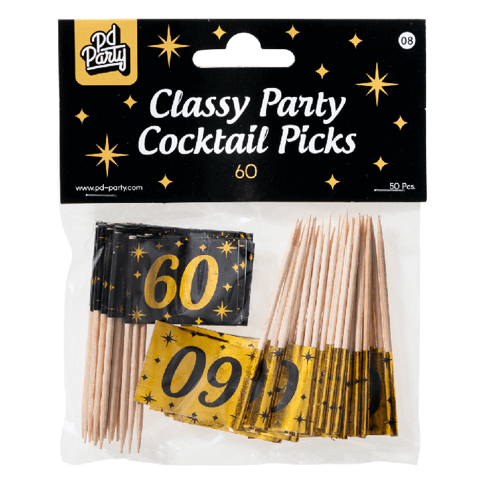 Cocktailprikkers met opdruk: "60 Jaar". 50 stuks