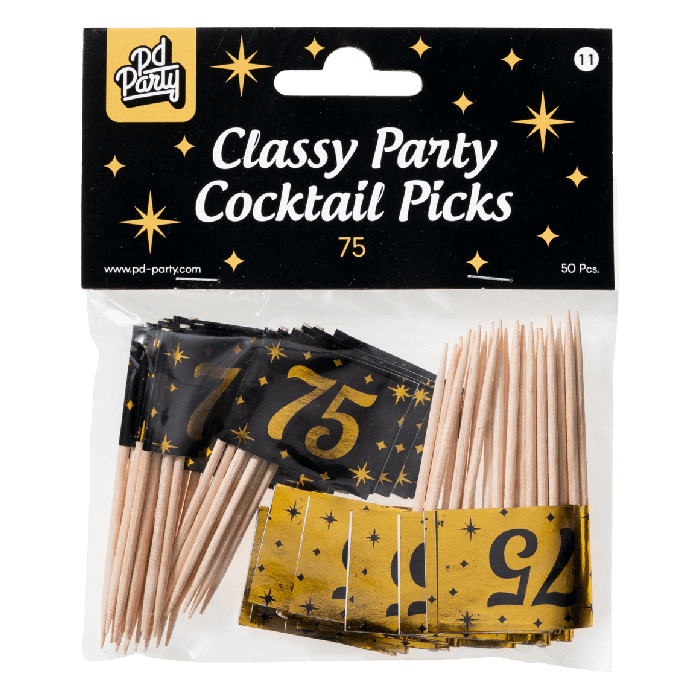 Cocktailprikkers met opdruk: "75 Jaar". 50 stuks