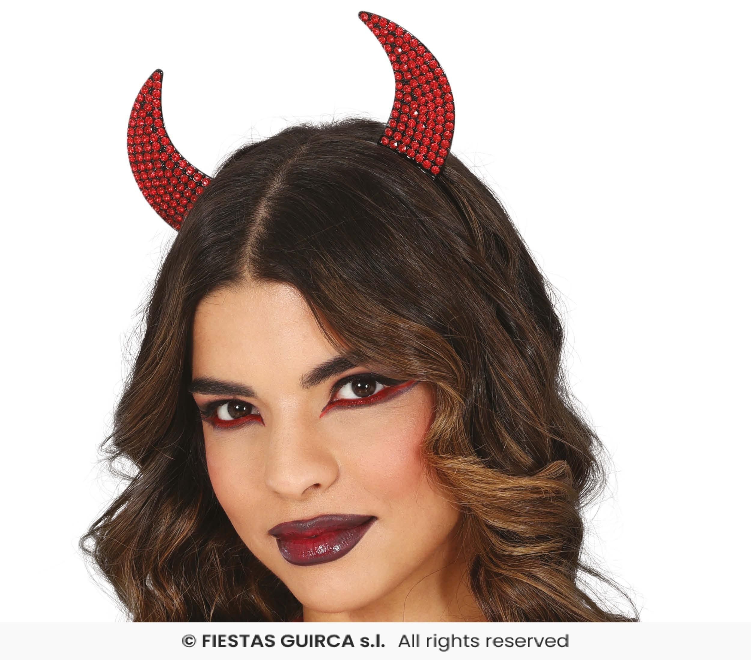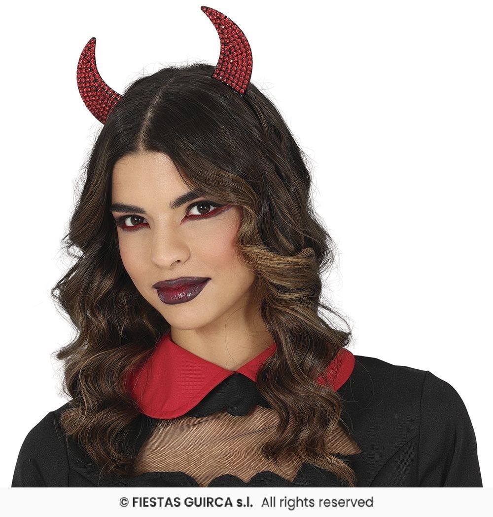 Steel de show als verleidelijke duivel met deze luxe rode duiveldiadeem! De metalen hoorns zijn bezaaid met fonkelende rode steentjes voor een glamoureuze maar duistere look. Perfect als finishing touch voor jouw duivelse Halloweenkostuum of als stijlvolle accessoire tijdens een foute party of themafeest.
