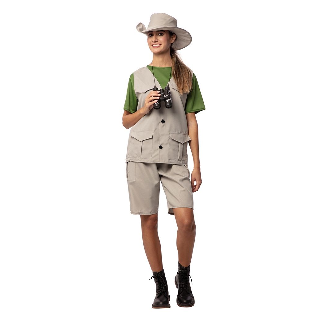 Ga op avontuur in stijl met dit luxe Safari Kostuum voor dames. Of je nu wilde dieren gaat spotten op een feestje of gewoon indruk wilt maken met je ontdekkingsreizigers-look – met dit kostuum zit je altijd goed! Natuurlijk perfect als je als Freek Vonk verkleed moet. De set bestaat uit een kaki vest, bijpassende shorts, een groene shirt, safarihoed om je outfit compleet te maken.