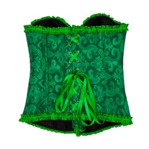 Op zoek naar een verleidelijke én feestelijke look? Met dit groene satijnen korset trek jij alle aandacht tijdens carnaval, een themafeest of avondje uit! Het korset heeft een chique glans, verfijnd patroon en is afgewerkt met speelse strikjes en kanten details.