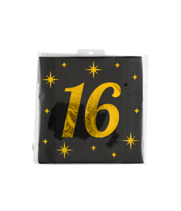 Maak een 16e verjaardag extra speciaal met deze zwart-gouden servetten. Het stijlvolle design met het getal 16 en gouden accenten zorgt voor een luxe en feestelijke uitstraling op tafel. Perfect voor verjaardagen, sweet sixteen feesten en andere feestelijke momenten.