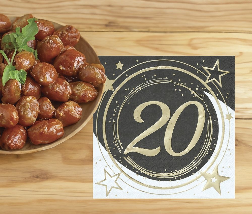 Til je feest naar een hoger niveau met Servetten Classy 20 jaar. In no-time een vrolijke setting.