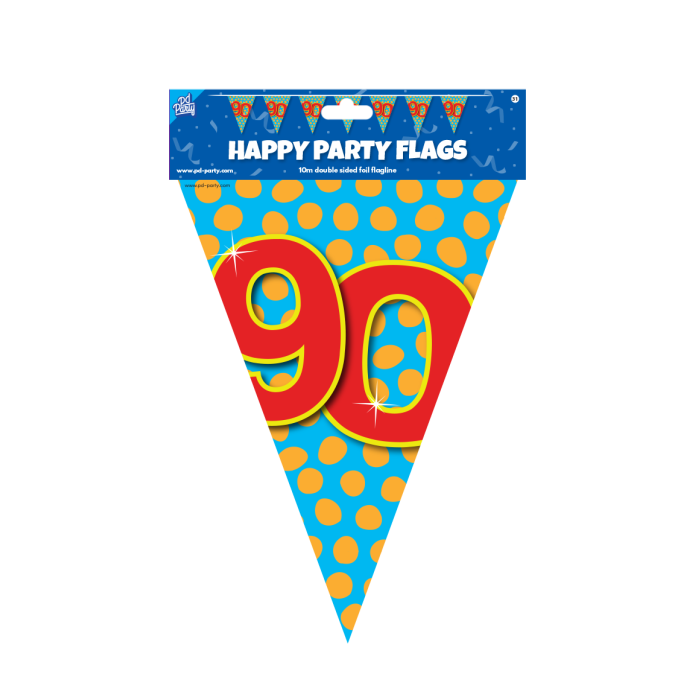 Vlaggenlijn 90 jaar 10M is je go-to decoratie voor elk feestje. Subtiel, speels en zó opgehangen.