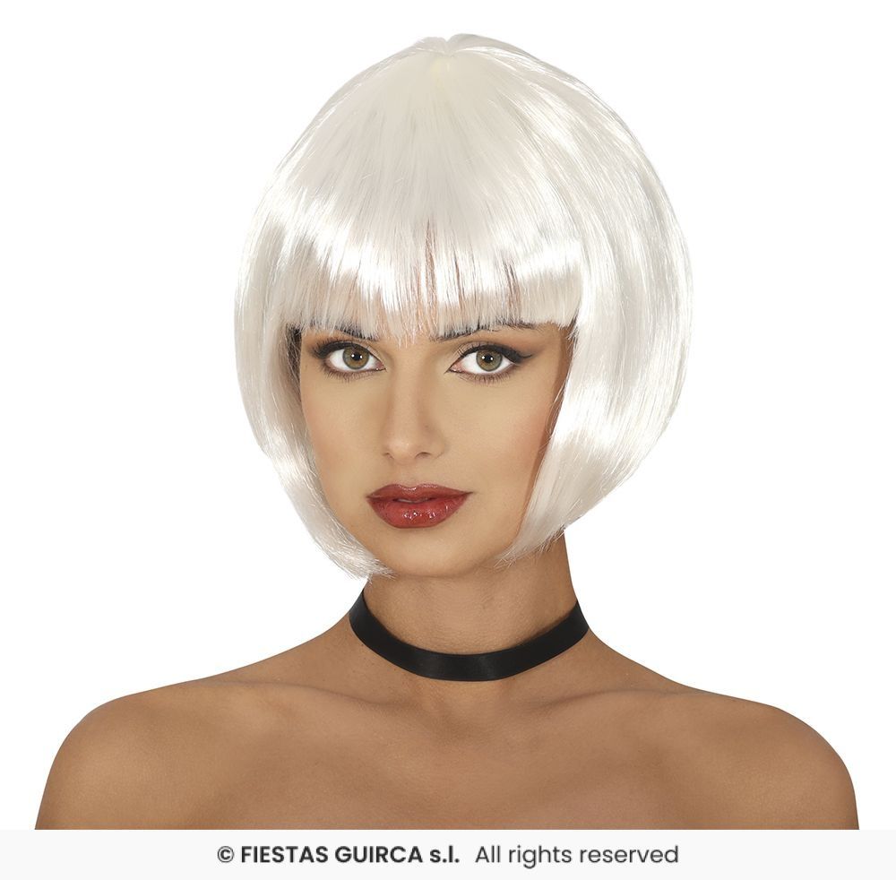 Met deze witte bobline pruik creëer je in één beweging een opvallende en stijlvolle look. De strakke, korte boblijn in helder wit geeft een moderne en elegante uitstraling die perfect past bij carnaval, themafeesten, cosplay en festivals. Ideaal voor iedereen die zijn outfit een unieke twist wil geven.