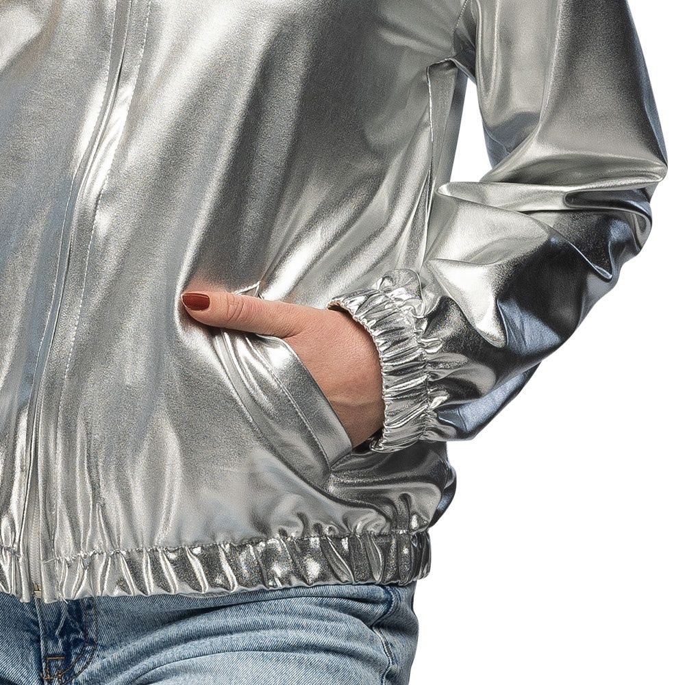 Met dit Zilveren jasje met rits geef je jouw outfit direct een opvallende en stijlvolle uitstraling. De glanzende Zilveren kleur zorgt ervoor dat je gegarandeerd opvalt op ieder feest. Perfect voor carnaval, themafeesten, festivals of een foute party.