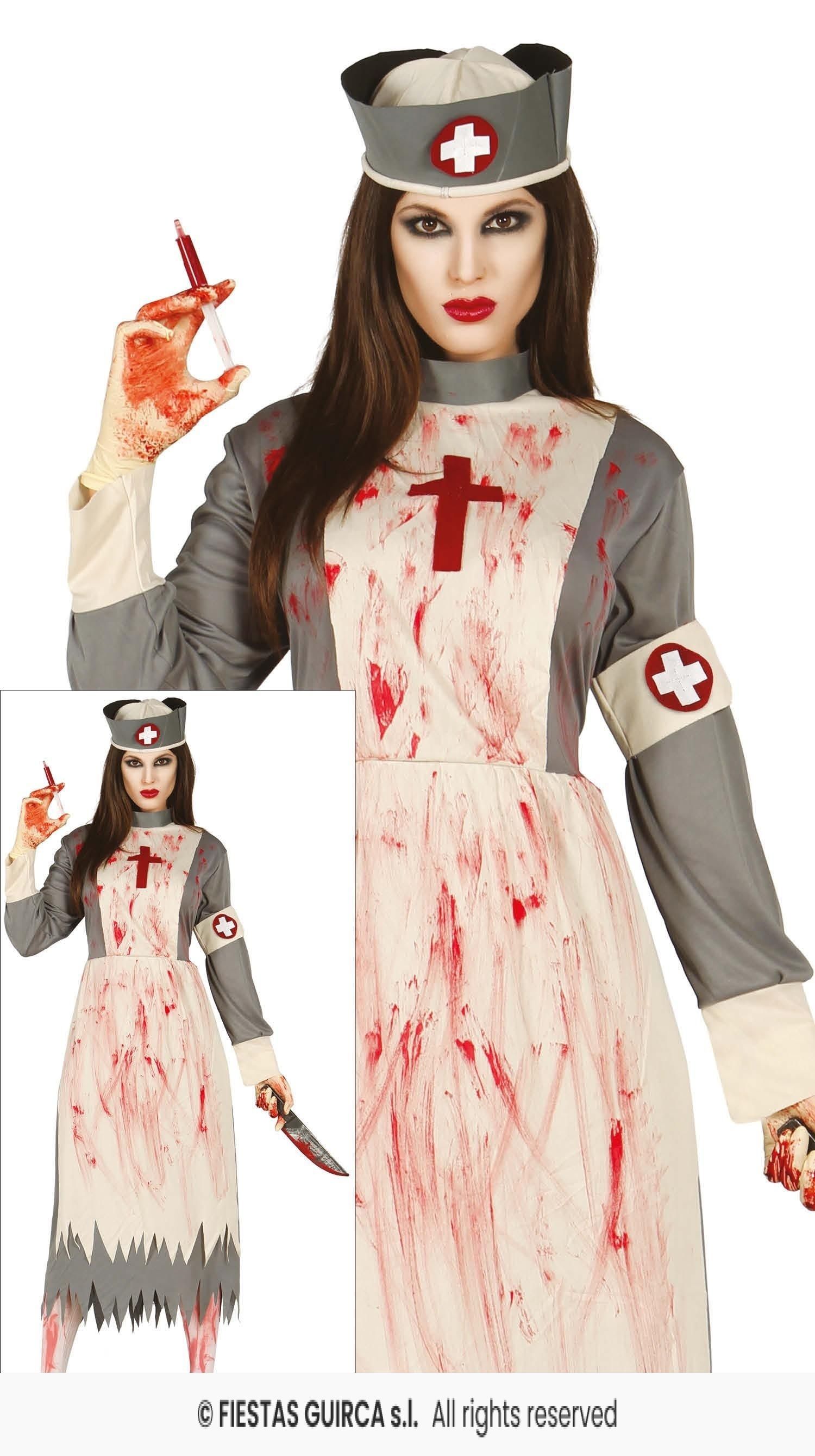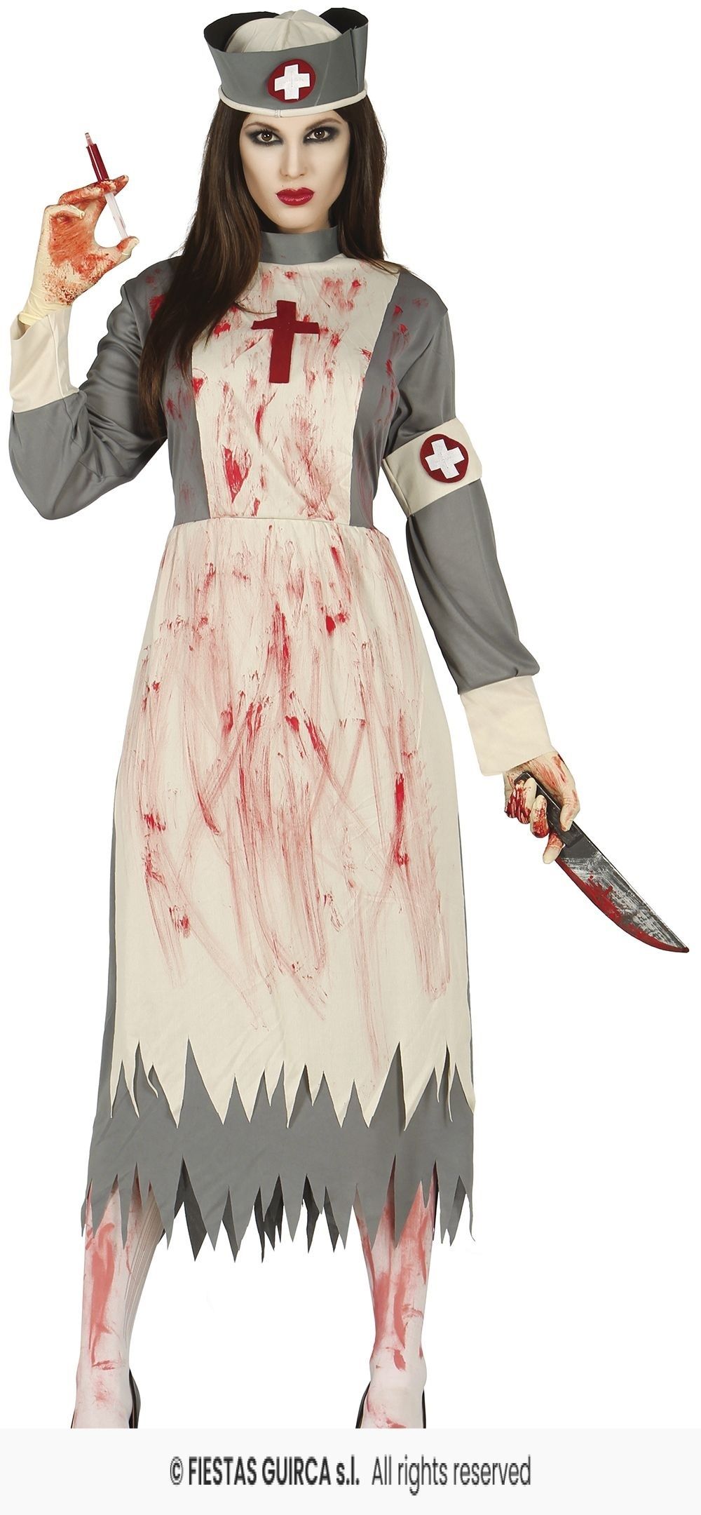 Combineer het met bloederige make-up of accessoires zoals een injectiespuit of mes en laat iedereen schrikken van jouw zorgeloze zorginstincten!