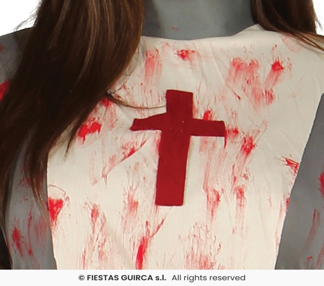 Ben je klaar om de gangen van het ziekenhuis te vullen met horror? Met dit angstaanjagende Zombie Zuster Kostuum verander je in een bloeddorstige nachtmerrie. De bebloede jurk, het medische kruis en de bijpassende verpleegsters muts maken jouw griezelige look compleet.